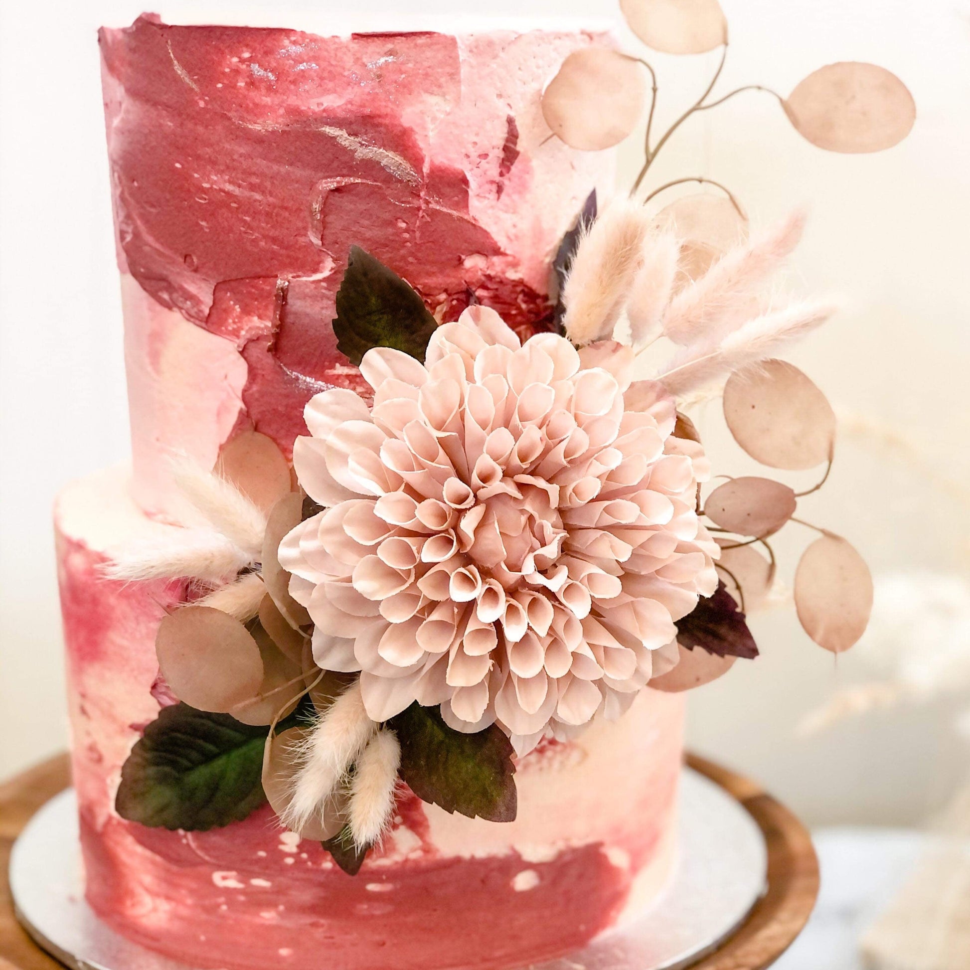 2 tier 6” and 8” cake Filled sponge cake with marble buttercream icing.
