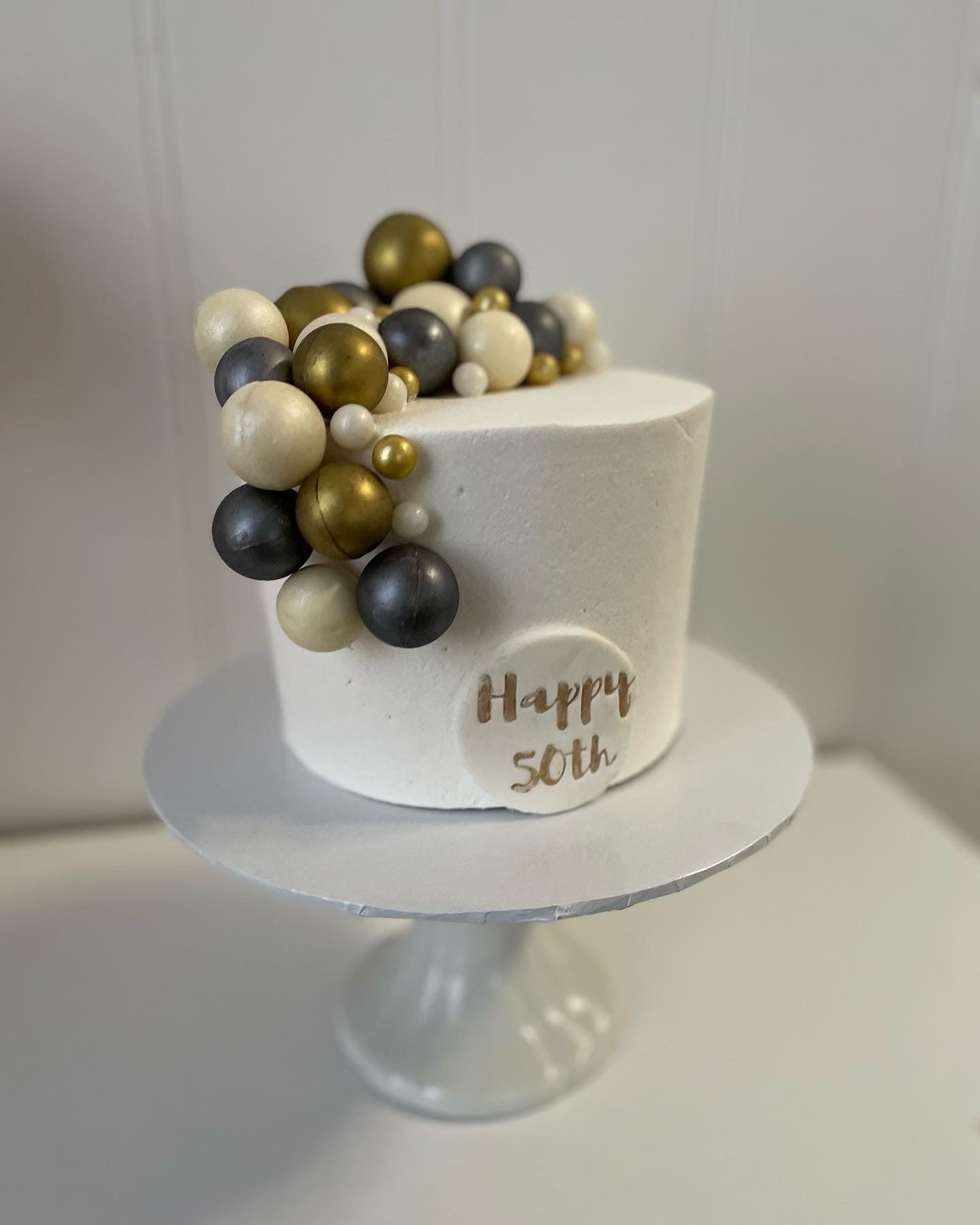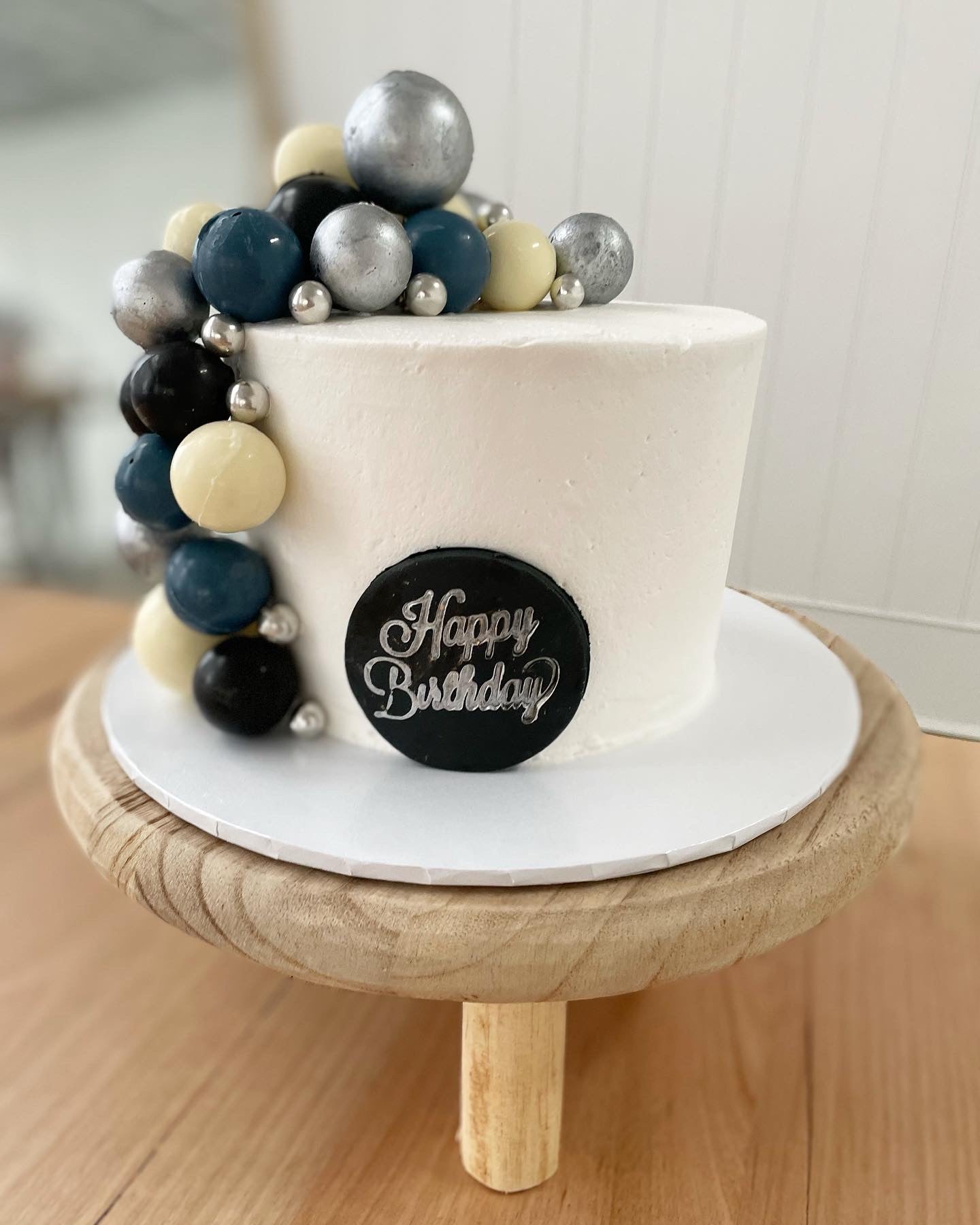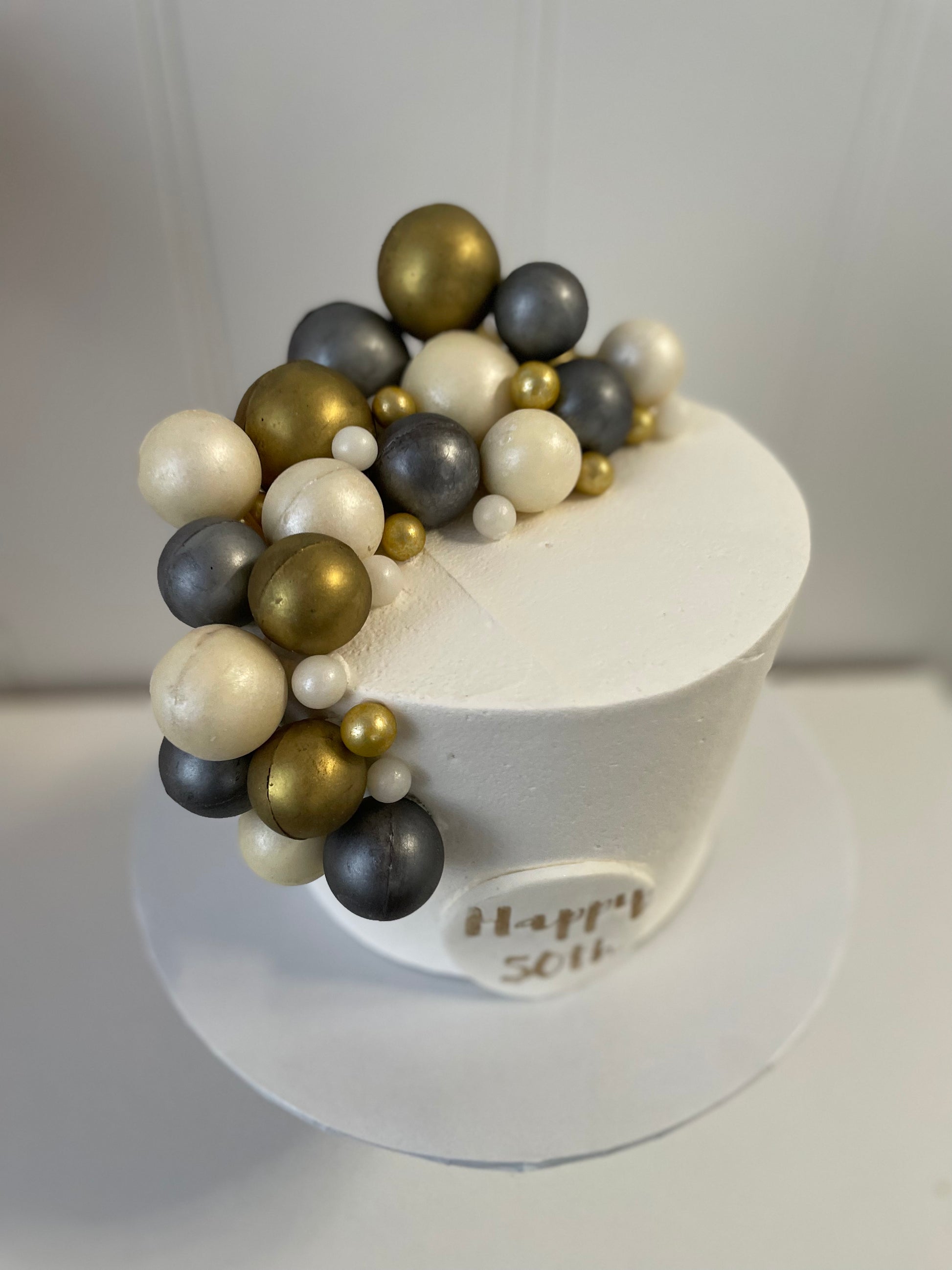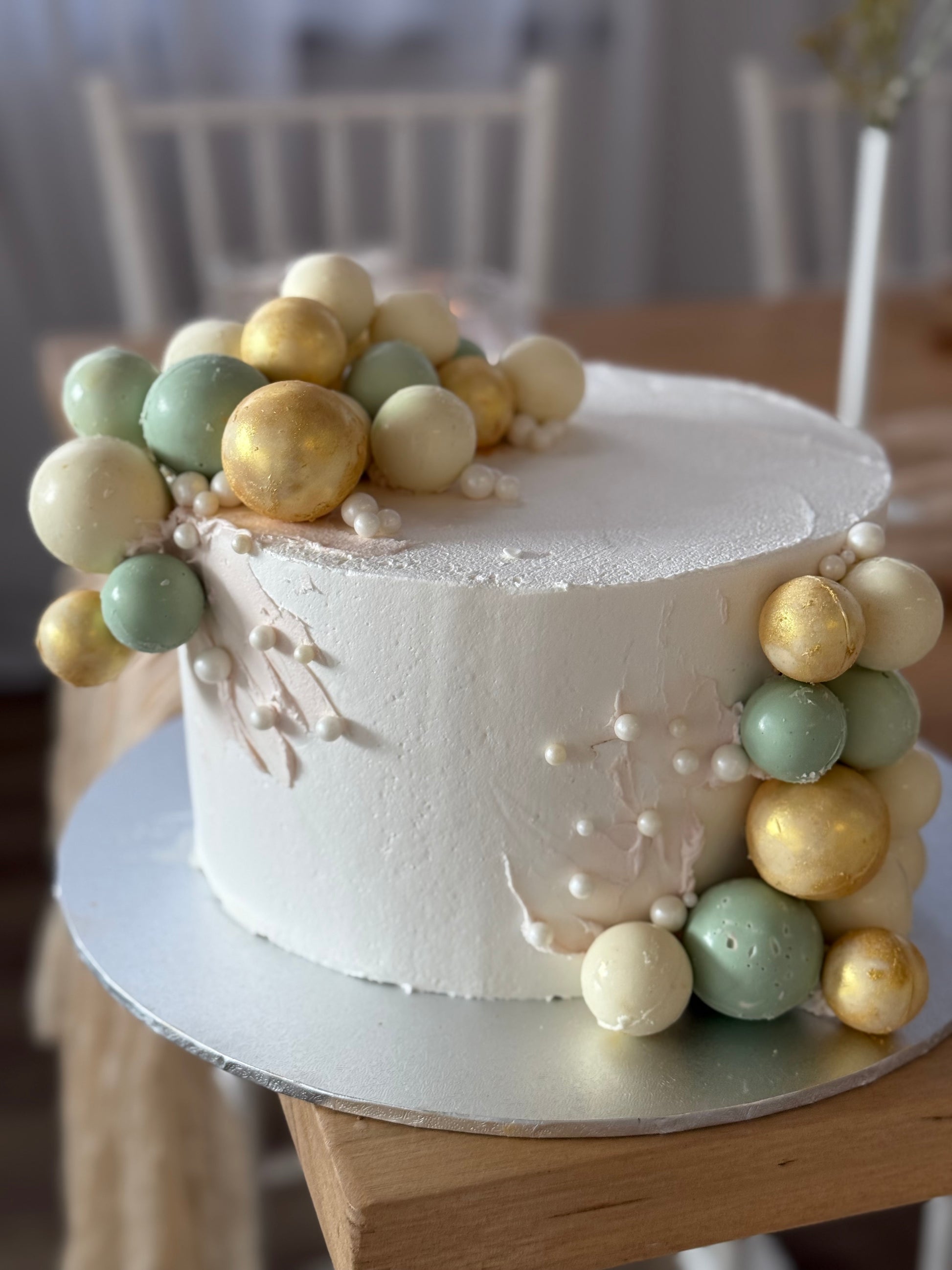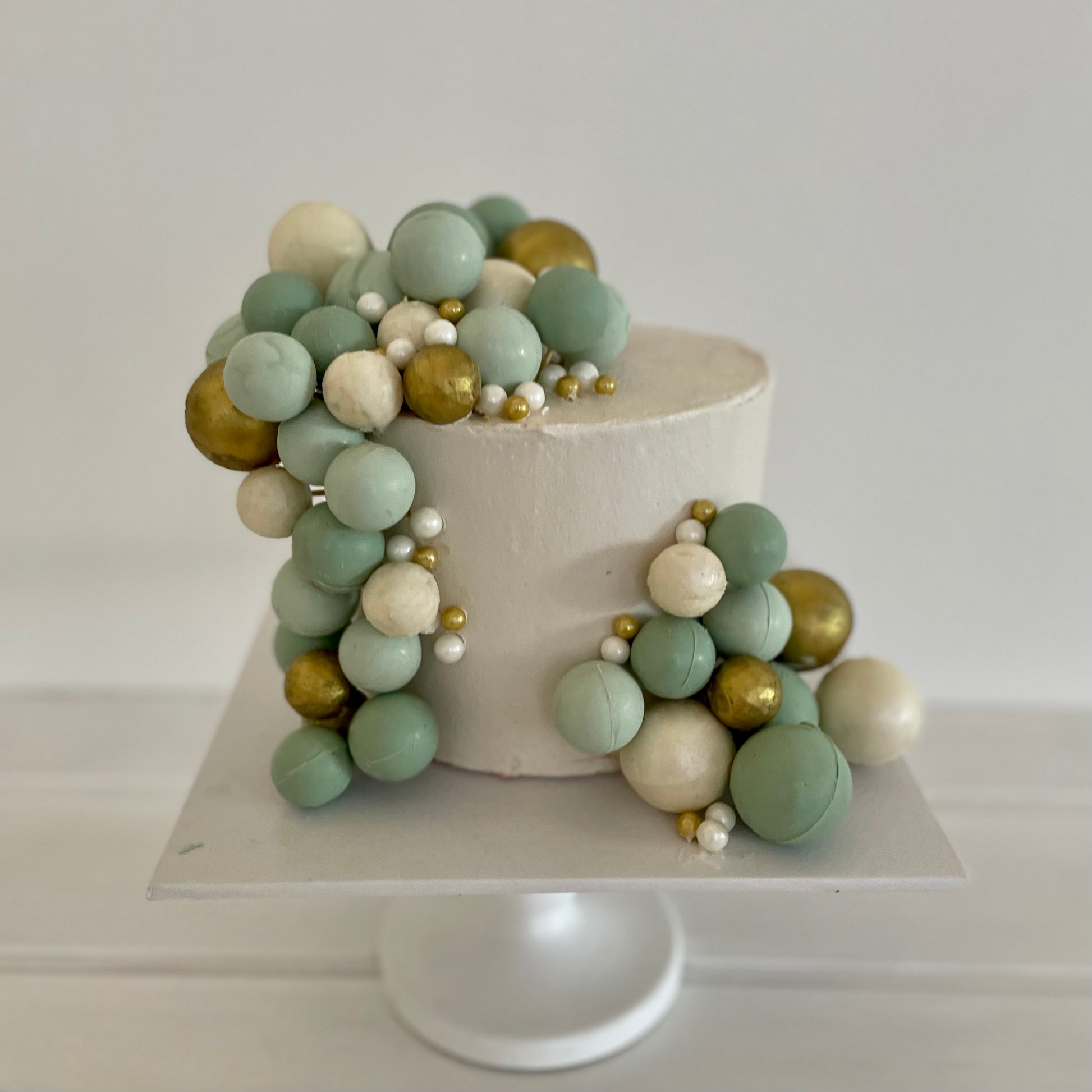 Filled sponge cake with smooth buttercream icing. Finished with balloon garland in either single or double garland. Your choice of colours.