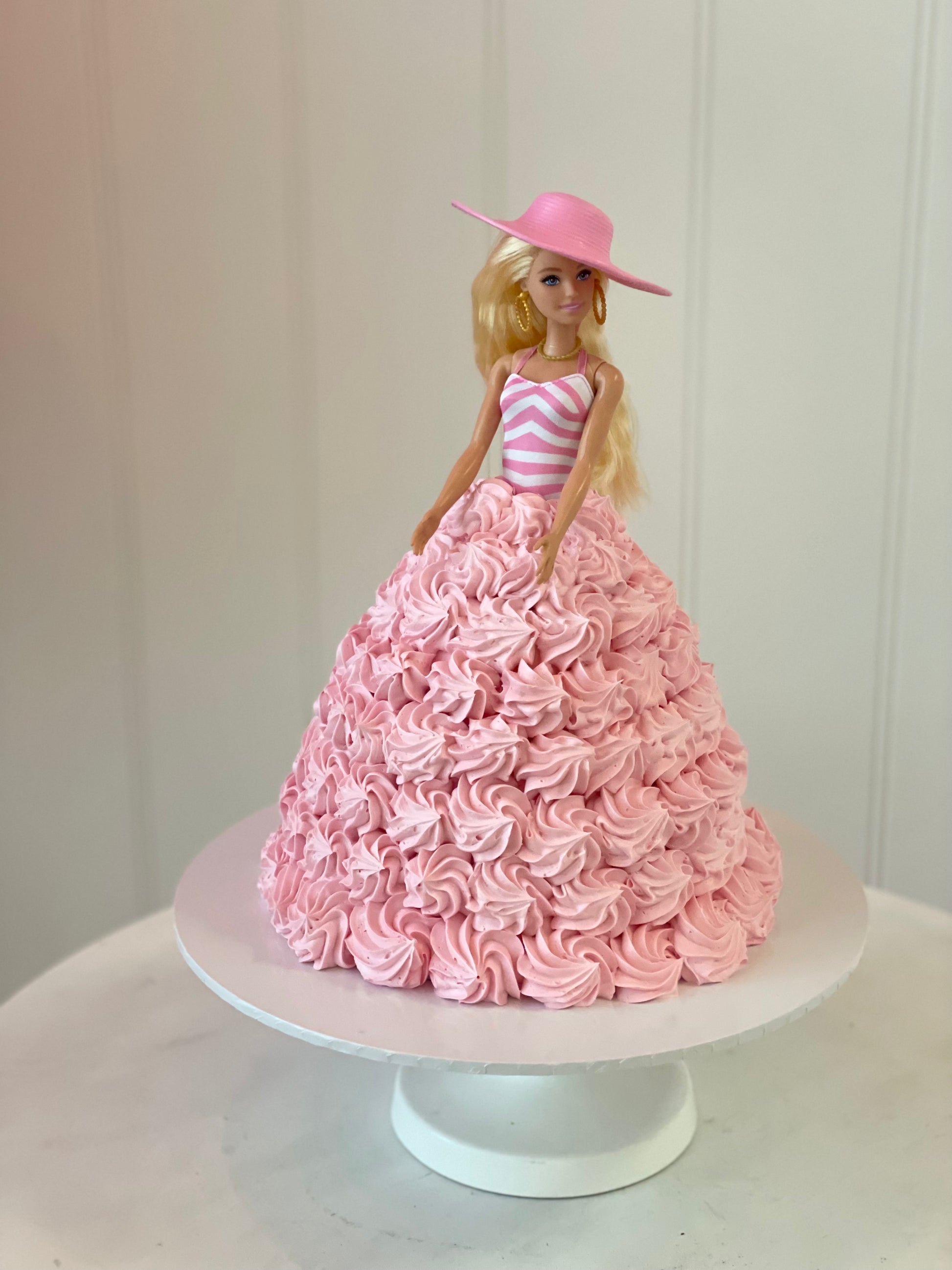 Real Barbie doll cake, designed with piped dress and in your choice of pink. Cake approx feeds 15-20
