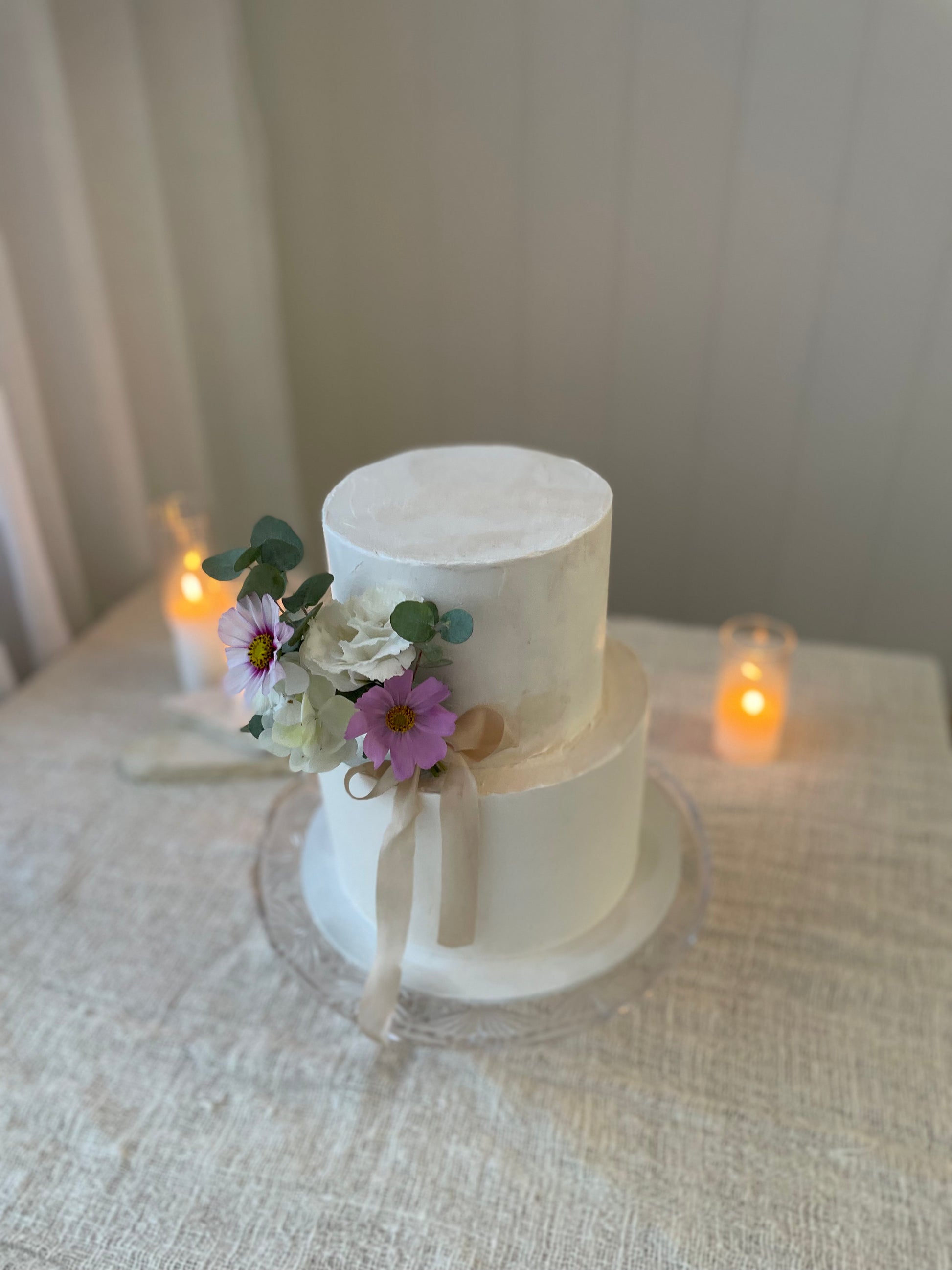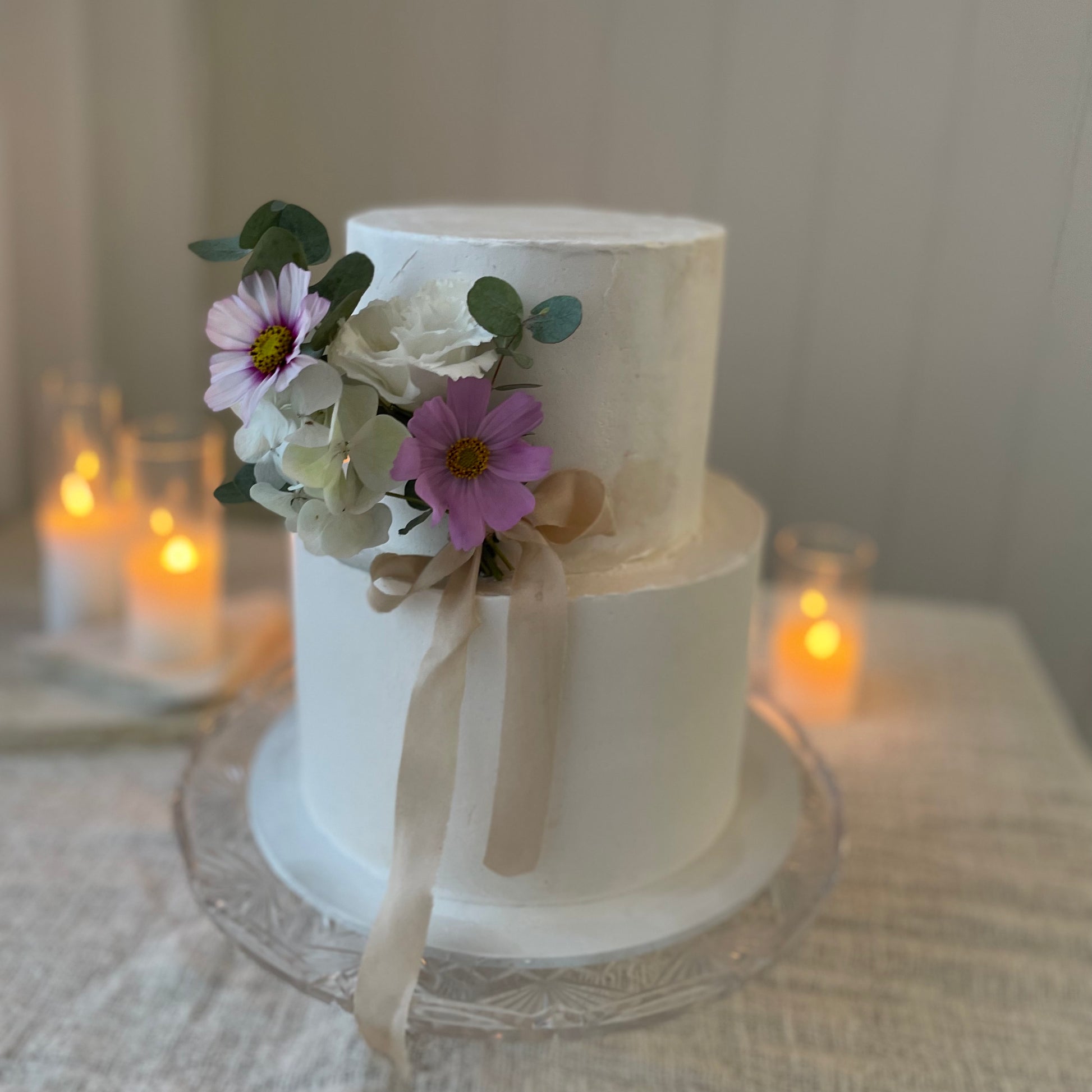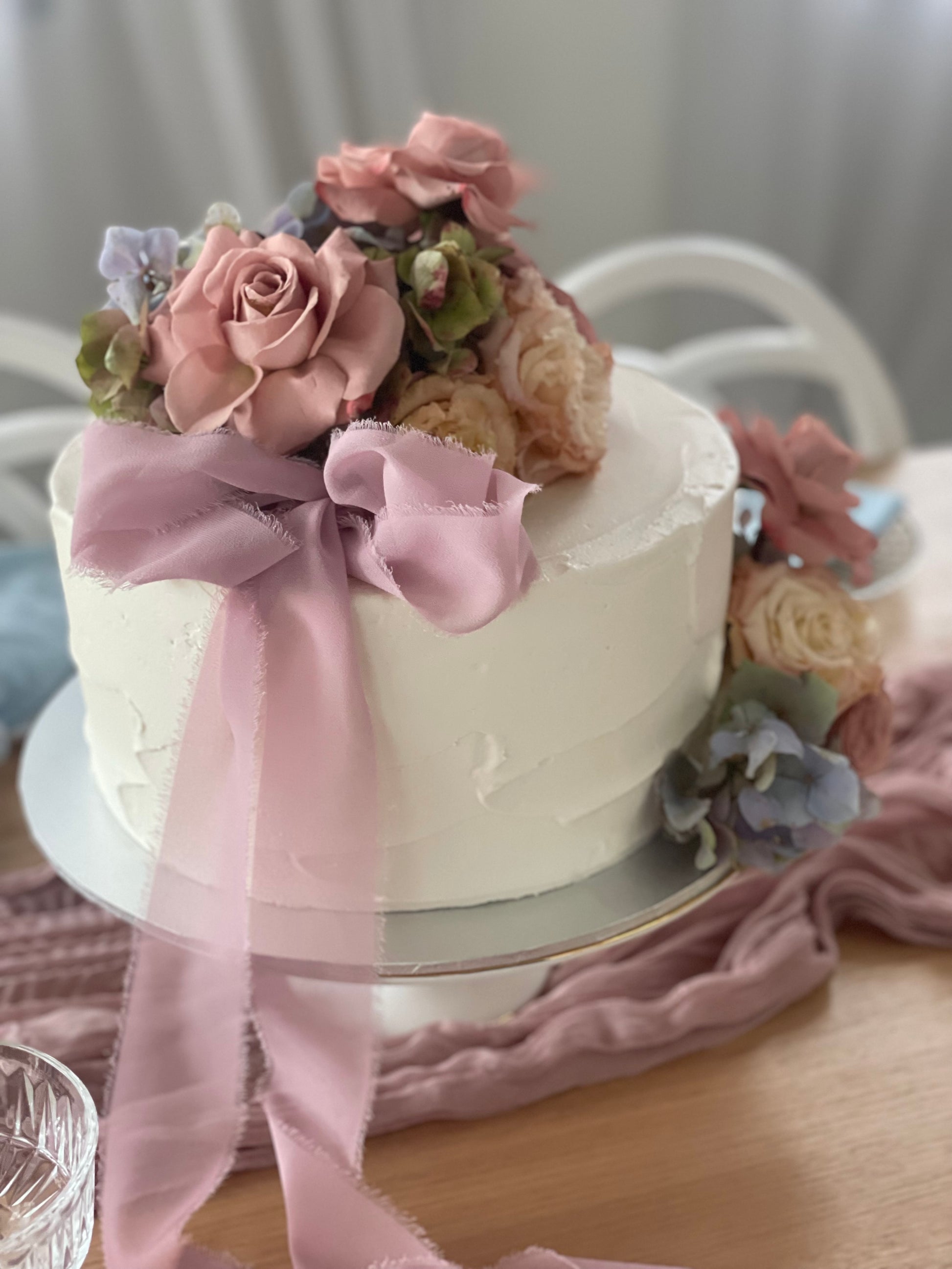Filled sponge cake with your choice of buttercream finish, topped with fresh flowers.