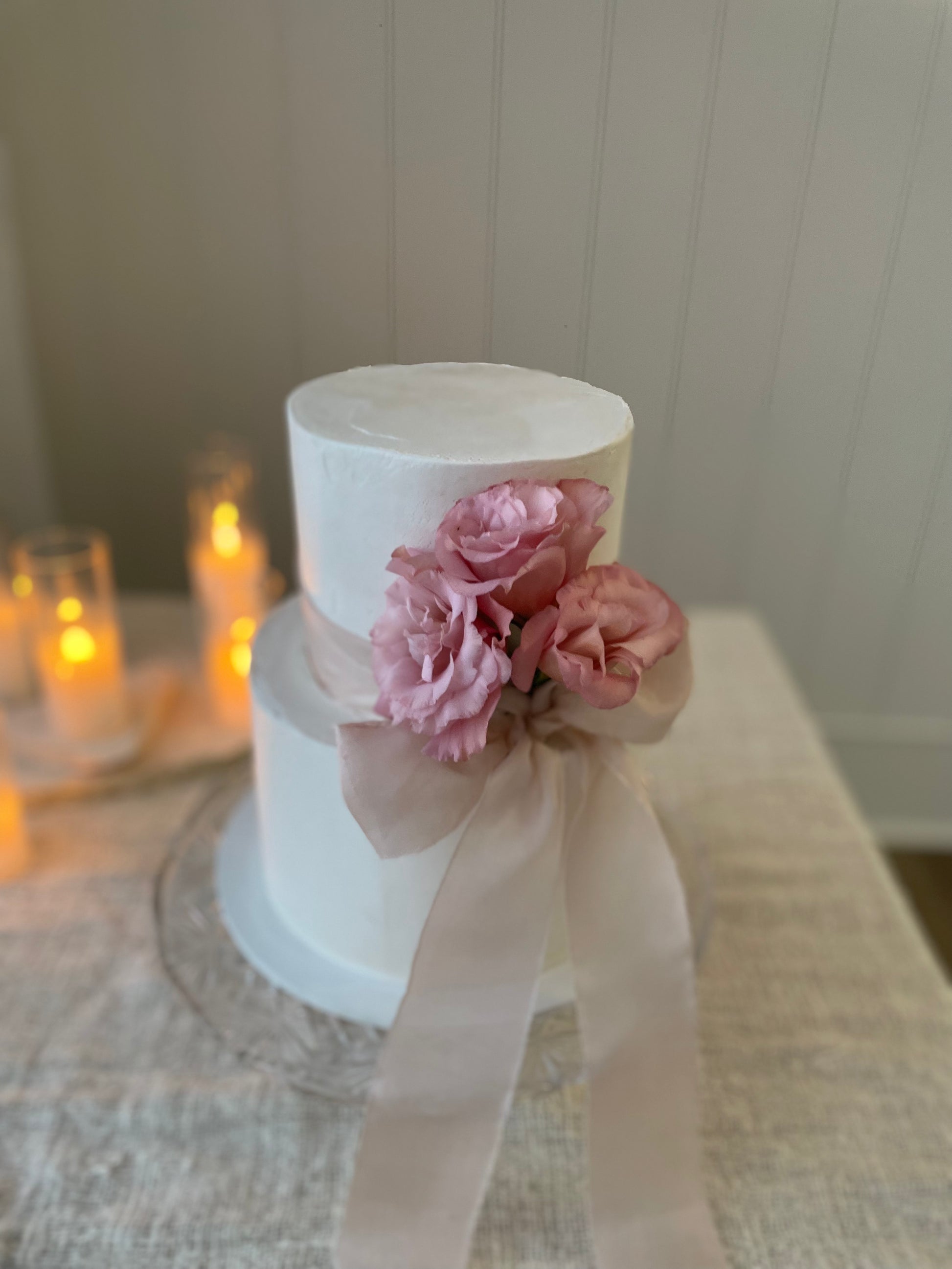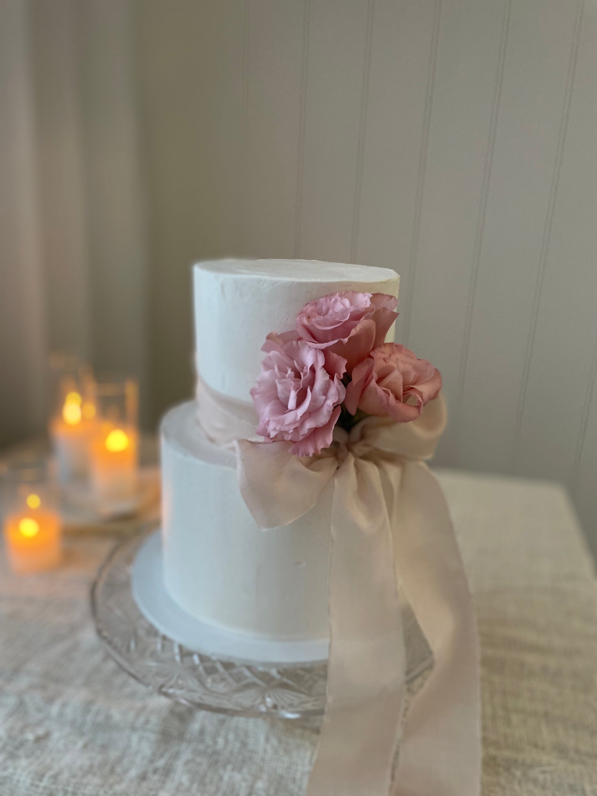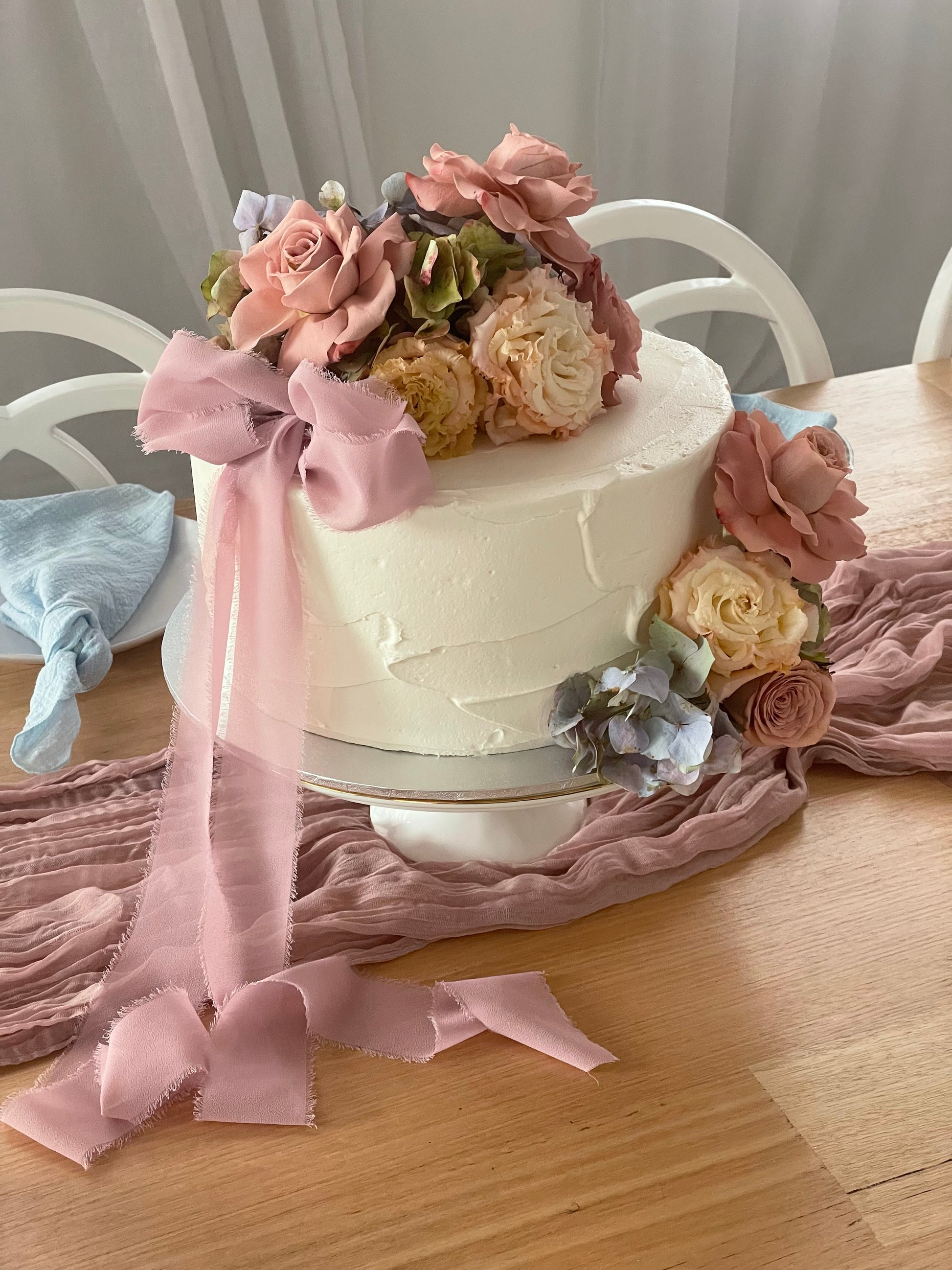 Filled sponge cake with your choice of buttercream finish, topped with fresh flowers.