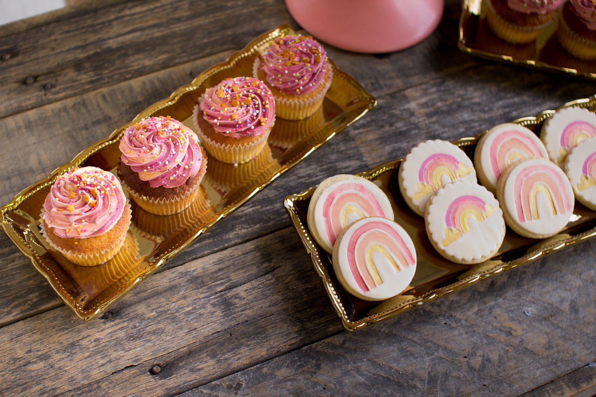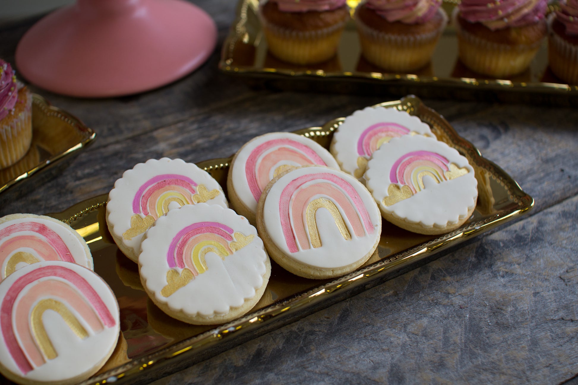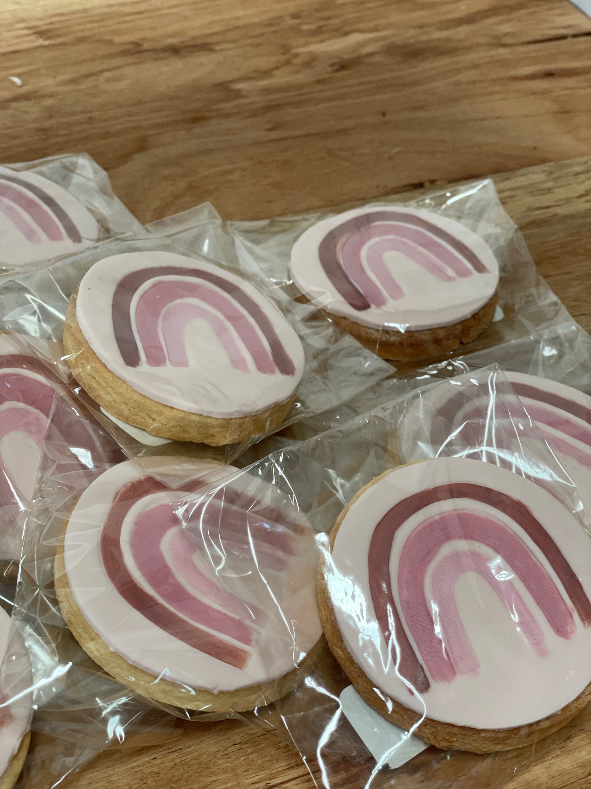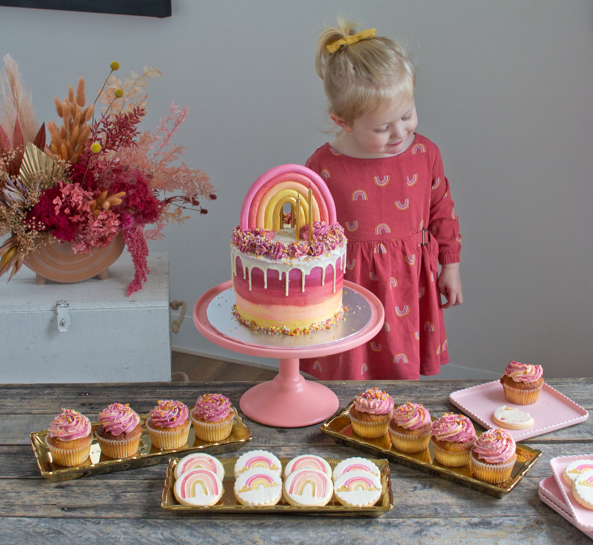 Filled sponge cake with smooth buttercream icing, and fun confetti pieces, drizzle and rainbow cake topper. You choose your colours and we will do the rest.